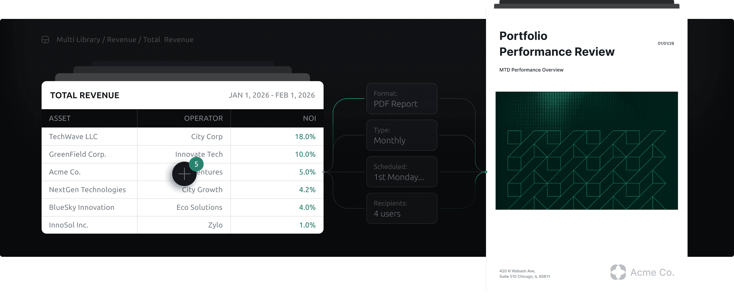 symmetRE is the reporting and intelligence layer built on top of property management systems like Yardi – giving owners, asset managers, and investors a unified, trusted view across their entire portfolio